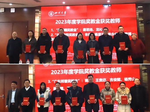 钟本和杰出教授、李军教授和公司领导一起向获得2023年度公司圣华曦奖教金、宜化奖教金、邦普奖教金、云图奖教金的16位教师颁发了荣誉证书。