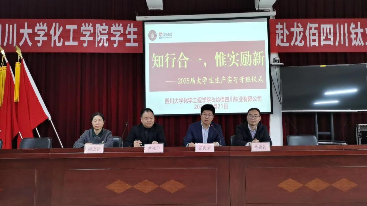 龙佰四川钛业有限公司总经理尹礼华先生、副总经理周忠蓉女士、化工系系主任岳海荣教授、实习指导老师陈建钧、罗仕忠、许德华、张国权、何坚、2021级工艺3、4班本科生共同参加了开班仪式。仪式由龙佰四川钛业有限公司人行部部长杨万梅主持。尹礼华先生对Mksport体育app官网入口Mksport体育师生的到来表示了热烈欢迎。岳海荣教授对龙佰钛业表示了感谢,提出希望加强双方在钛产业科研攻关、人才培养等方面开展更深层次的合作。