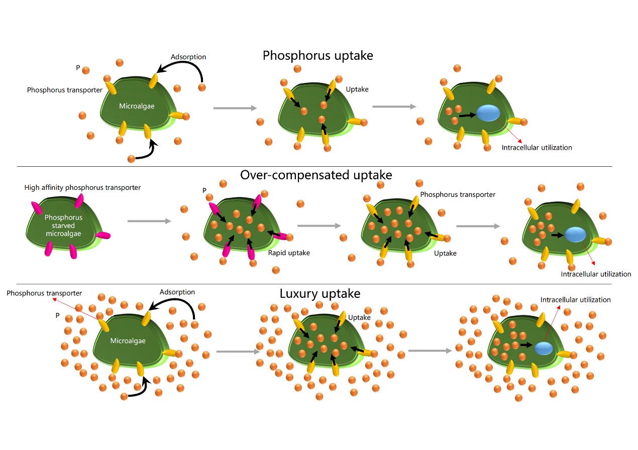 此外,微藻对磷的吸收收到诸多因素影响,包括二氧化碳浓度、氮磷比、光条件(光强、光周期和光波长)、温度和pH值等。通过调整上述影响因素,并结合微藻除磷的特殊机制,有望进一步提高微藻的除磷效率。
