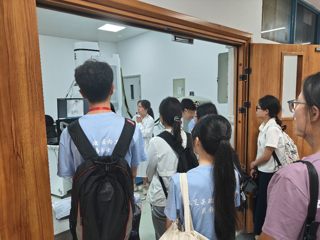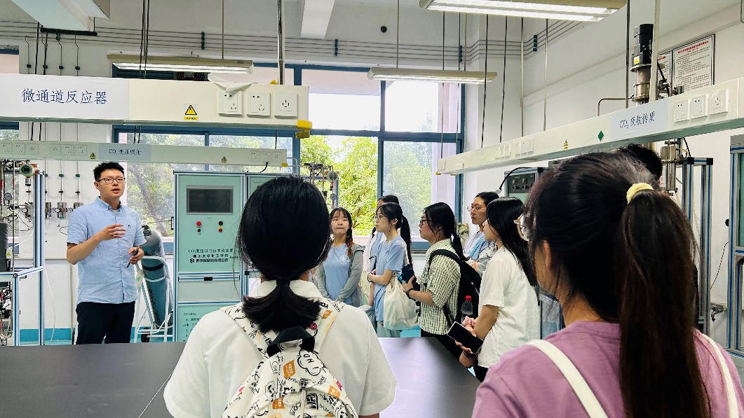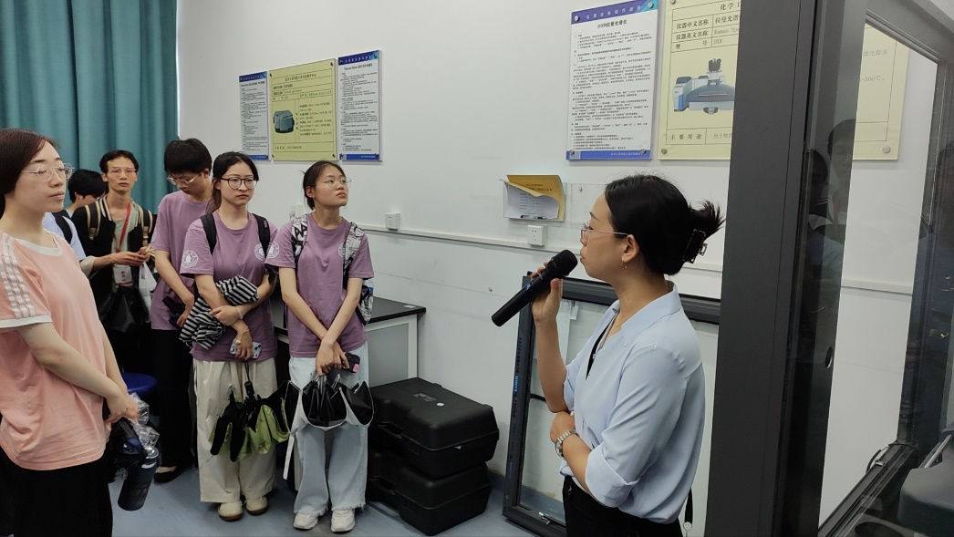 在参观过程中,中心老师们向他们详细介绍了各种实验设备的原理及应用方向。期间,同学们热情不减,不时交流提问,老师们耐心而专业的讲解获得了同学们的一致好评,也让夏令营同学们对Mksport体育的实验设备条件、化工学科的科研环境有了深入地了解。