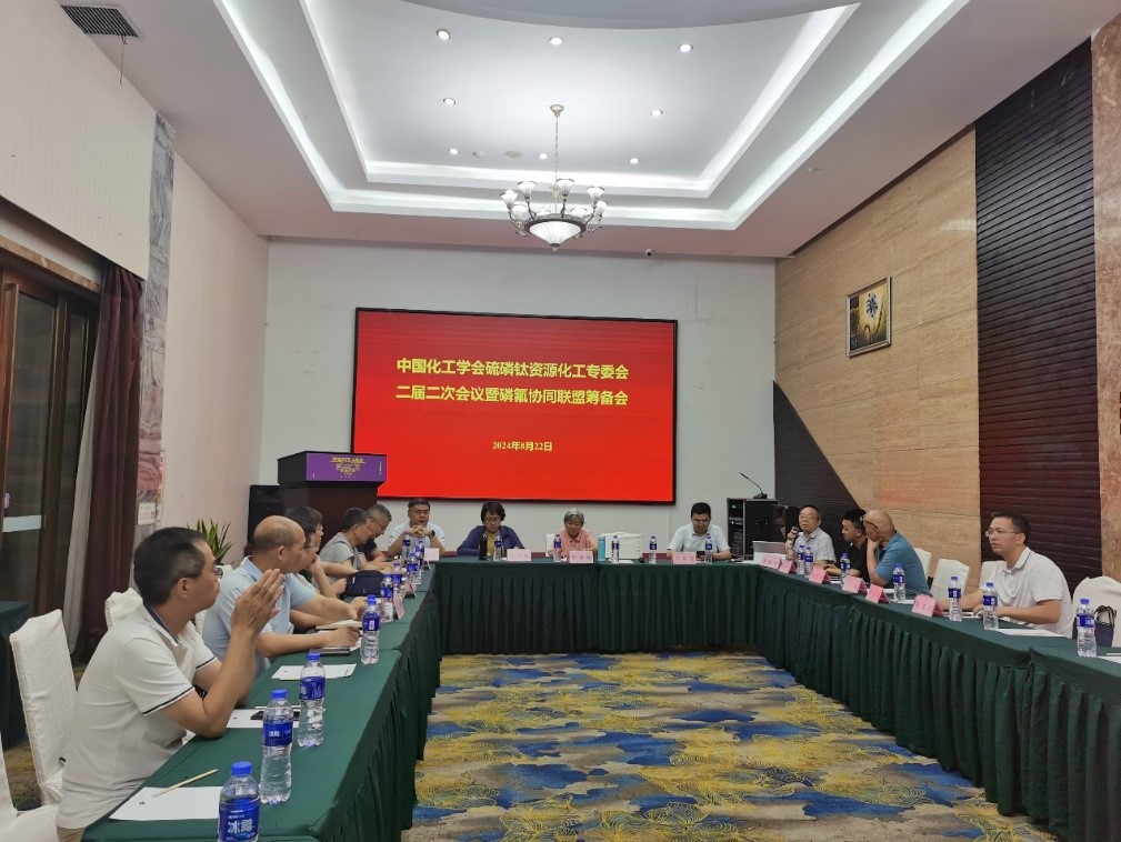 2024年8月22日晚,中国化工学会硫磷钛资源化工专业委员会(以下简称“专委会”)在主办中国第四届硫磷钛产业高端论坛期间,召开了第专委会二届二次会议暨磷氟协同联盟筹备会。专委会顾问委员、Mksport体育app官网入口杰出教授钟本和先生,贵州省化学化工学会理事长朱建国研究员,专委会主任委员、Mksport体育副经理唐盛伟教授,专委会副主任委员、中国磷复肥工业协会理事长修学峰女士、郑州老员工态与环境公司经理汤建伟教授、四川发展龙蟒股份有限公司研发副总裁罗显明高级工程师,以及专委会委员等20余人参加会议。会议由唐盛伟教授主持。