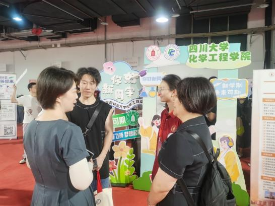 公司领导也来到迎新现场,亲切看望报到新生和参加工作的志愿者,了解报到注册和各项服务保障情况,与研究生同学及家长亲切交流,并向研究生同学们送上深切祝福。