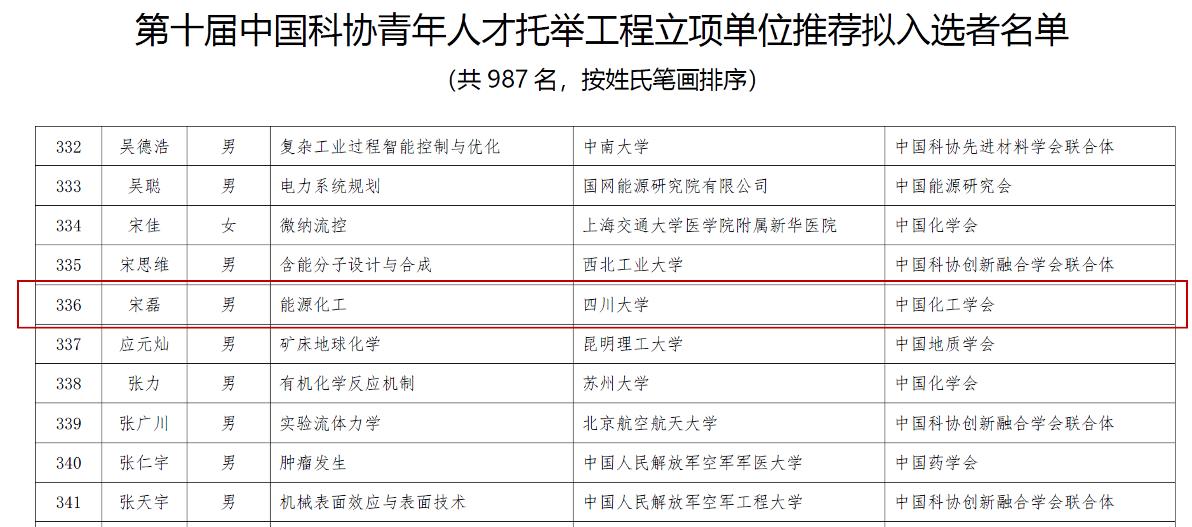 2月26-3月4日,中国科学技术协会对第十届中国科协青年人才托举工程人选名单进行公示,共遴选出第十届中国科协青年人才托举工程人选987名。公司青年教师宋磊副教授入选。