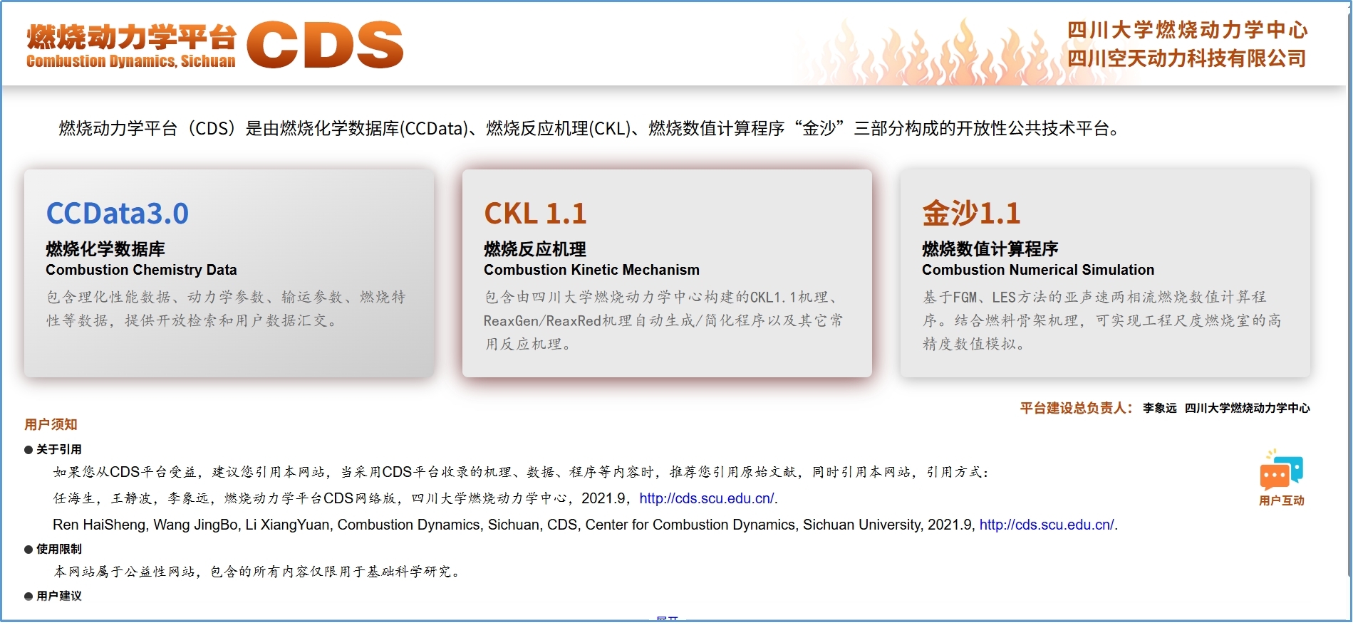 燃烧动力学平台CDS(https://cds.scu.edu.cn/)