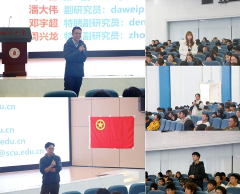 互动环节将现场气氛推向高潮。同学们提问踊跃,内容涵盖前沿研究的深度追问与个人成长的务实探讨。汪伟教授与刘壮教授细致解答,结合自身科研经历与行业前瞻,深入浅出地给出建议,并鼓励同学们保持好奇、深耕专业,同时注重多学科知识的融合贯通。