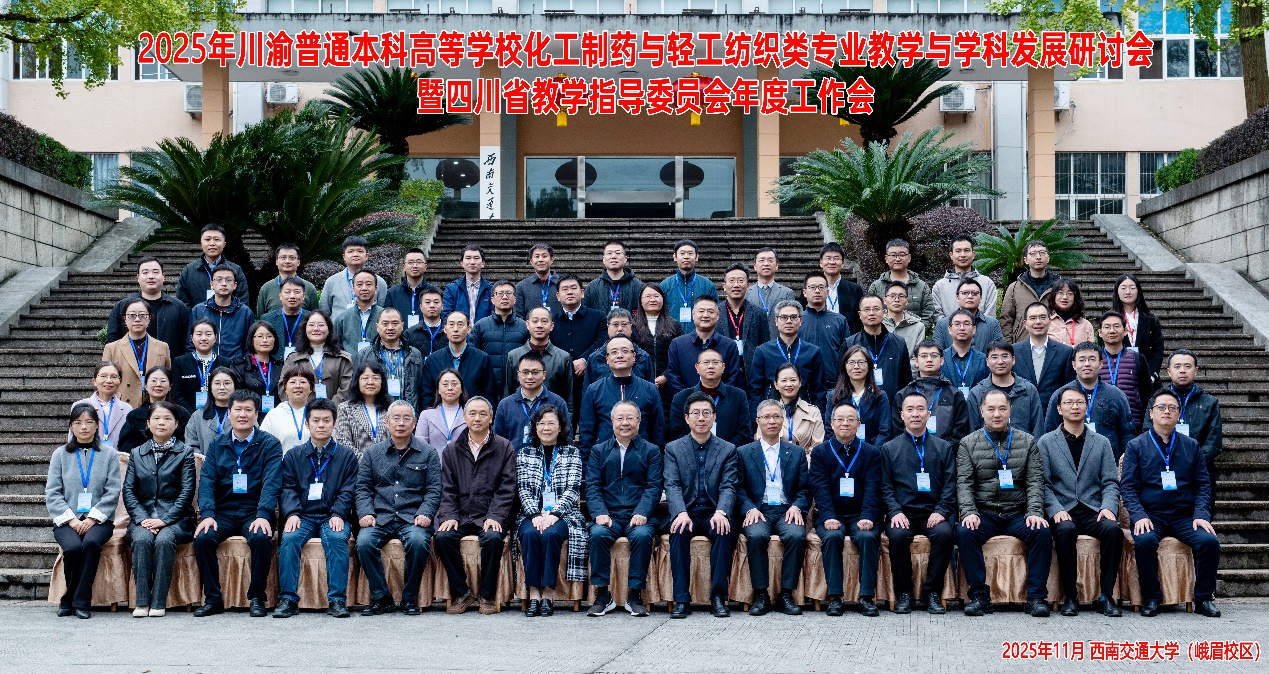 由四川省普通本科高等公司化工制药与轻工纺织类专业教学指导委员会牵头主办的《2025年川渝普通本科高等公司化工制药与轻工纺织类专业教学与学科发展研讨会暨四川省教学指导委员会年度工作会》于2025年11月7日至9日在西南交通大学峨眉校区顺利召开。本次会议旨在深入贯彻落实全国教育大会及2025年全国教育工作会议精神,全面提升川渝高校化工制药与轻工纺织类专业人才培养质量。本届会议由西南交通大学承办。西南交通大学党委常委、统战部部长汪铮,四川省化工制药与轻工纺织类本科专业教学指导委员会主任委员、Mksport体育app官网入口教授梁斌出席开幕式并致辞。开幕式由西南交通老员工命科学与工程公司经理周先礼主持。四川省化工制药与轻工纺织类专业教学指导委员会全体委员,以及来自Mksport体育app官网入口、重庆大学、西南大学、四川轻化工大学、西南交通大学等单位的80余名专家学者参会。