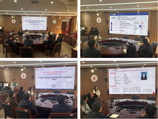 主题报告环节,特聘副研究员邓宇超、博士后艾浩和刘艳依次围绕“先进功能材料介导的微流化学与技术”、“生物质球形硬碳拓扑缺陷调控与功能化”和“药物小分子调控剂开发及机制研究”三大前沿方向,系统梳理了各自研究思路、阶段成果与下一步规划,并分享职业路径与教研平衡感悟。