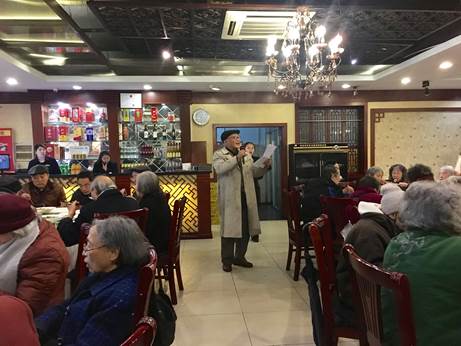 公司为老同志们在北苑餐厅安排了团年餐,老教师们互相问候、分享退休生活和养生体会。退休教师童长春老师喜爱诗词创作,他近期创作了一首诗,今天也在团年餐上和大家进行了分享。