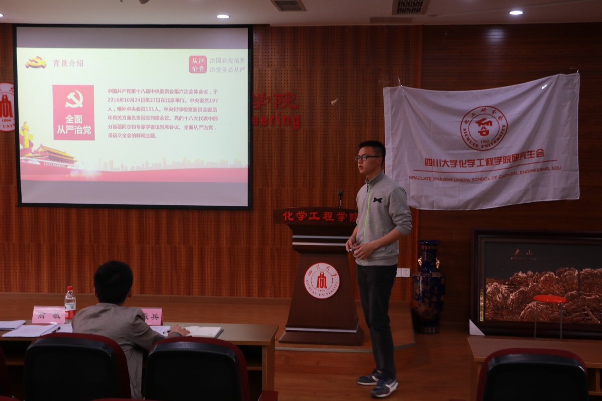 为深入推进公司党风廉政建设,Mksport体育于4月在全院开展党风廉政建设教育宣传月活动。由公司党委主办、Mksport体育研究生分会承办的“公司党支部学习之党风廉政建设专题PPT制作与宣讲大赛”于2017年4月25日下午14:30在望江校区化工楼313报告厅举办。本次活动的评委嘉宾有化学公司党委陈晓东副书记、党政办主任李晓燕老师、高敏老师和研究生辅导员司振兵老师。Mksport体育研究生及本科各个员工党支部的党员代表参加了这次大赛。