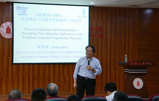 首先,祝京旭教授以制作“肉片炒茄子”这道菜作比,浅显通俗又生动形象地阐述了过程集成与过程强化的原理并综合此两者,使其“强—强联合”、“1+1>2”;接着他介绍了自己的科研工作,如何从颗粒、流态化发散到各个领域;随后他介绍了其所在研究团队近年来在这些方面取得的研究成果及优势,如:液固循环流化床用于高效污水处理,超细粉末喷涂技术,肺部给药和化工反应器等。最后,他还分享了“20%-80%成功定律”——“人们通常只用20%的努力就能取得80%的结果,但最后重要的20%往往要付出80%的努力才能取得”。 在之后的互动交流环节中,祝京旭教授与现场师生进行了热烈的探讨,师生们踊跃提问,祝教授一一解答,现场学术氛围十分浓烈。祝教授鼓励同学们作为主体去思考和表达,要跨学科、跨领域,随时随地想问题——学会“想入非非”、“不按常理出牌”等。报告对青年教师和研究生们如何开展科研工作具有良好的启迪意义。