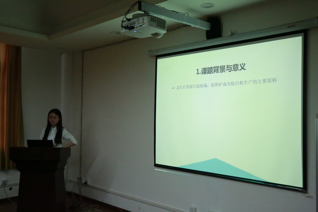刘维燥作为第一报告人,主要讲解了一种从钛铁矿中制备人造金红石的方法。