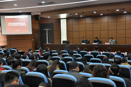 2014年12月30日,Mksport体育app官网入口在望江校区明德楼414报告厅举行新媒体联盟成立仪式暨2014年宣传思想工作总结表彰大会。公司党委书记杨泉明教授,公司党委副书记周学东教授、李向成教授出席成立仪式暨总结表彰大会。公司相关单位参加了仪式暨大会。公司党委副书记周学东教授主持成立仪式暨总结表彰大会。
