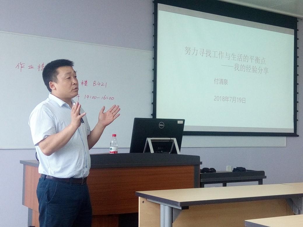 2018年7月19日下午成都伊诺达博医药有限公司付清泉总经理为公司同学带来国际课程周“制药与生物工程学科前沿”系列讲座最后一场——努力寻找工作与生活的平衡点。