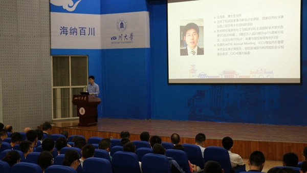 随后Mksport体育副经理唐盛伟教授为新生们上了第一堂课。唐经理向同学们详细介绍了Mksport体育的专业分类,并阐述了什么是化工。同时,唐经理就化工与环保、化工与安全两方面帮助同学们更深入的了解到化工这个行业的相关知识。最后,唐经理建议同学们树立目标、规划人生方向,敢于面对挫折和挑战,在川大这个新起点、新舞台成就自己。