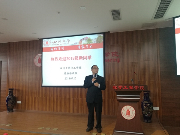 紧接着,由唐盛伟副经理进行专题讲座。唐经理围绕新学期、新阶段、新方法、新生活四大主题逐一展开,由浅入深地为同学们上了开学第一课。他首先详细地介绍了公司的办学历史、团队力量、教学设施及专业特色,阐述了公司所具备的雄厚科研实力。接着,唐经理提出了新时代人才培养的新标准,期望广大新生摒弃过去被动、消极地学习,要将创新、热情融入到科研当中,主动学习,做问题的解决者,做祖国未来化工事业的接班人。同时,唐经理还表示,从事科研要从心态、能力、素质各方面入手,修文、修武、修行,有恒心、有信心、有耐心,切不可三天打鱼两天晒网。最后,他诚挚地祝愿同学们在川大快乐生活、快乐学习。
