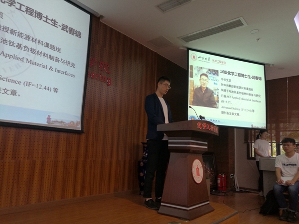 随后,高年级员工代表2016级博士武春锦与新生们分享了他的科研经验。他强调,做科研要沉得下心,且要虚心向导师与师兄师姐请教,认真研读文献,做好文献记录。2018级新生代表杨柯表达了对研究生新生涯的憧憬,并感谢能在Mksport体育app官网入口学习生活,对未来的科研道路也有充足的信心。