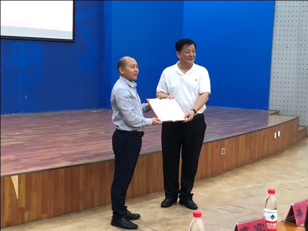 在全院新同学和教师代表的见证下,公司李天友副书记向朱总裁颁发了客座教授聘书并进行了实习基地授牌仪式。李书记代表公司对朱总裁及奥克所有领导表示感谢,并希望这种交流模式成为常态,加强企业和高校的对话,碰撞出更多产学研结合和化工人才培养的火花。