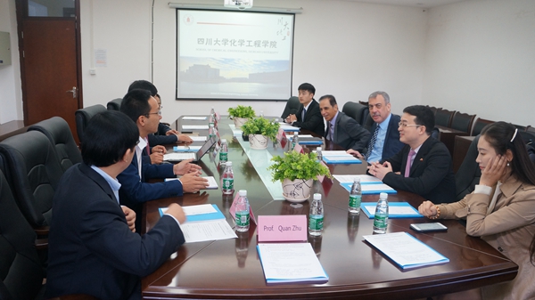 座谈会上,相关院领导、国际交流合作处徐晶老师等就公司本科生联合培养项目的政策和情况进行了介绍,并与Mahmoud Al-Qutayri教授就双方未来进一步洽谈“3+2”联合培养项目达成一致意见。会后,在化工系汪伟老师引导下,哈利法大学一行参观了公司“膜科学与功能材料”研究室。