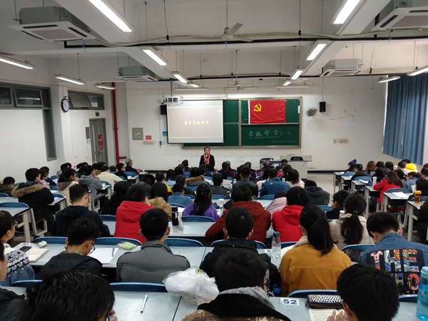 2018年12月2日上午9:30,Mksport体育第五期“求是学堂”第二讲在江安校区综合楼C座403教室开展。本次课程邀请到Mksport体育app官网入口关心下一代工作委员会(简称校关工委)素质教育部副部长赵雪琴老师和秦自明老师,为140余学员授课,旨在通过优秀老党员分享入党经历和为学员们答疑解惑,坚定广大学员的入党信念和端正入党动机,指明学员们奋斗的前进方向,从而使其珍惜入党机会。到场的嘉宾有校关工委办公室主任汪朝清老师,以及校关工委党建部、素质教育部和院关工委的11位老师。2017级辅导员喻可乐老师主持本次活动。