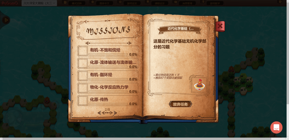 2018年12月9日,海纳杯化学争霸赛第一场-工科综合化学于互联网+竞技化教学PaGamO平台顺利开赛。本次比赛根据余徽副经理建议,由工科化学基地朱权主任于10月份开始进行统筹规划、委托周加贝和赖雪飞老师负责具体筹划和实施,调动近代化学基础有机和无机、物理化学和化工原理等教研室主任和多位老师进行题库设计和在线答疑。比赛过程中,员工将通过比拼习题的正确率和速度抢占PaGamO中的土地,购买道具,建设家园。