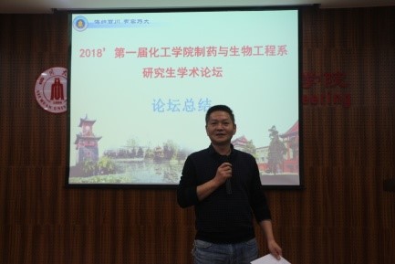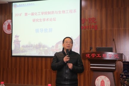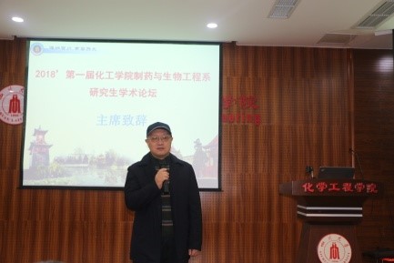 随后,宋航教授代表本次论坛学术委员会发言致辞。他表示,不同课题组之间的学术交流是非常重要而且有意义的,此次论坛是制药与生物工程系所有老师都希望开展的一次交流会,它将是一个非常好的开端。之后,他表示希望此次交流能够拓宽研究生的科研思路,激发和提高科研兴趣和科研素养,增强课题设计和矫正、数据归纳整理、汇报表达和问题解答等能力。