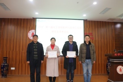 宋航教授和张永奎教授为一等奖获得者孙巧媚、袁伦颁奖