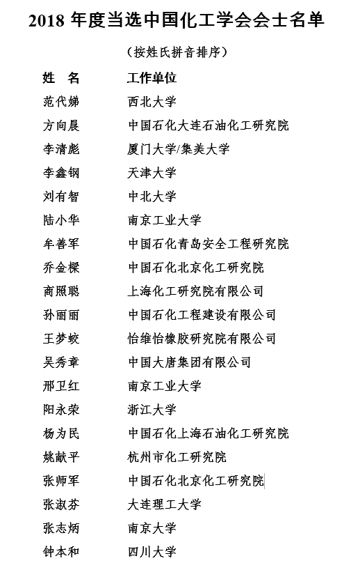 近日,在北京召开的中国化工学会40届二次理事会上,中国化工学会2018年度首批会士授予仪式隆重举行。中国化工学会理事长、中国石油化工集团公司董事长、党组书记戴厚良院士宣布了2018年度中国化工学会会士授予决定,Mksport体育app官网入口杰出教授钟本和等全国20位在化工领域做出卓越成绩和为学会作出突出贡献的会员当选为中国化工学会会士(详情见下图)。