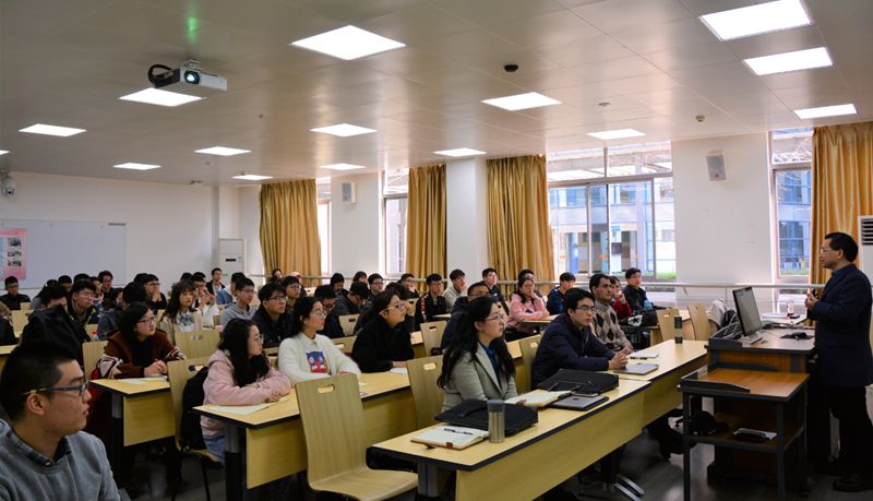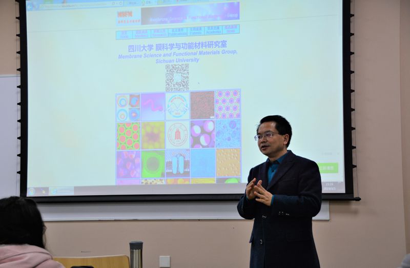 会议由文国宇同学精心策划,分为导师发言、师生问答和分组讨论三个环节。首先,文国宇同学向2018级化工与制药专业的本科生同学们一一介绍了参与此次见面会的研究室导师们。随后,褚良银教授上台讲话,他首先向所有同学表示欢迎,鼓励大家进入实验室了解学科研究前沿,培养科研兴趣和创新能力。接着,褚老师结合研究室主页向同学们讲述了研究室在膜材料与膜技术、智能控制释放系统和微流控等方向取得的研究进展,同时也展示了膜科学功能材料研究室的团队成员的精神面貌和丰富的研究生生活。在褚老师生动的讲解中,与会的同学们被成就卓越的导师团队、精妙实用的科学研究、多姿多彩的组内生活深深地吸引。紧接着,Yousef Faraj副教授就“如何在本科学习生涯取得成功?”这一主题进行发言,他提出“Don’t study hard, but study effectively.”让在座的同学们耳目一新。他提出对待学习需要主动积极的态度以及高的学习效率,并针对如何提高学习效率提出的五点具体建议,得到了与会同学们的一致赞同。虽然Yousef Faraj副教授全程使用英文发言,但这没有阻碍师生之间的交流,现场互动频繁,气氛十分活跃。导师发言环节最后,魏竭老师介绍了位于江安校区的实验教学中心公共平台,鼓励同学们根据自己的兴趣积极参与实验、锻炼动手能力,并借用公司提供的丰富教学资源学习进步。