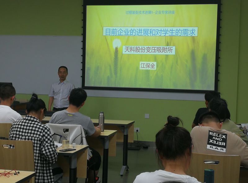 2019年4月24日晚7点,天科股份PSA净化工程技术中心专用设备研究开发室负责人、变压吸附所设备部江保全主任在Mksport体育app官网入口江安校区一教A411教室为过程装备与控制工程及相关专业大三员工开展了一场“目前企业的进展和对老员工的需求”交流讲座。