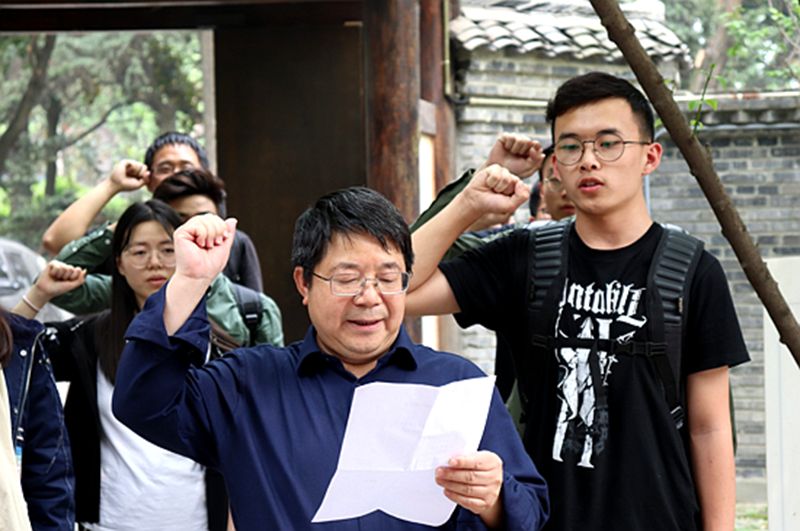 “我志愿加入中国共产主义青年团,坚决拥护中国共产党的领导……为共产主义事业而奋斗!”在江姐雕像前,校外辅导员黄仁春老师带领17级安全工程团支部的团员青年们重温了入团誓词。宣誓现场庄严且充满活力。随后,到场嘉宾为团员青年佩戴团徽。