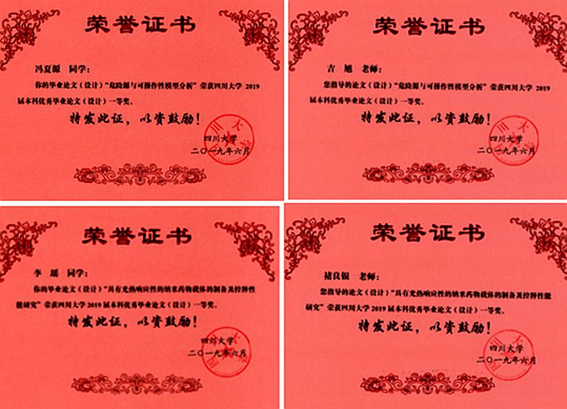 川大教【2019】102号文件公布了“Mksport体育app官网入口关于表彰2019届本科优秀毕业论文(设计)获奖者的决定”,并对获奖员工和指导老师给予了表彰,其中公司获得Mksport体育app官网入口2019届本科优秀毕业论文(设计)17篇。