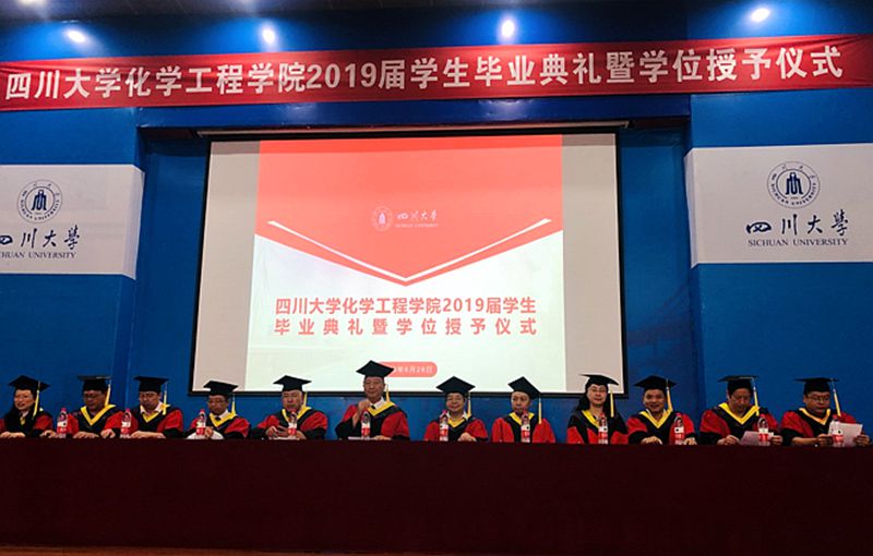 2019年6月28日上午9时,Mksport体育2019届员工毕业典礼暨学位授予仪式在江安校区水上报告厅隆重举行。2019届毕业的24位博士研究生、173位硕士研究生和261位本科生齐聚一堂,在师长亲友的共同见证下,为自己的川大化工求学岁月画上圆满的句号,开启新的人生征程。
