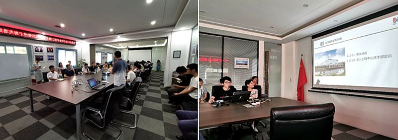 2019年6月29日上午,成都英德生物暨四川老员工物工程专业同学实习总结会在英德公司会议室举行。会议上,英德生物公司的几位领导发表了自己的想法和体会,肯定了同学们吃苦耐劳的精神,同时也赞扬了同学们热爱学习、不懂就问的做法,让他们也学到了很多东西,最后表达了对大家的祝福。生物工程系领导对英德公司表示了感谢,公司提供的机会让同学们的设计能力有了明显的提升,也赞扬了同学们的辛勤付出,同时对带队的三位实习指导教师表示了感谢。随后是同学们的实习总结展示,每个小组各有特色,分享了自己实习的经历,汇报了自己的实习收获以及一些实习过程中的趣事。同学们纷纷表示此次实习收获颇丰,纸上得来终觉浅,绝知此事要躬行,深刻理解了理论一定要落实到实践。虽然在企业只有短暂的时间,但无处不在的企业文化及员工们的行动也深深影响了大家。最后英德生物给员工们颁发了实习结业证书,也标志着此次实习圆满结束。
