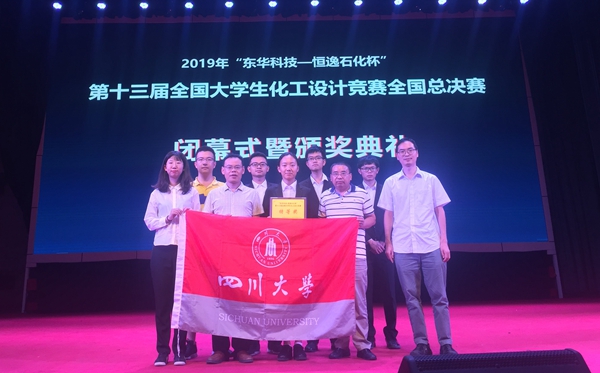 竞赛从2019年1月开始启动,Mksport体育共组建了5支参赛团队参加了竞赛,并筛选出Mksport体育app官网入口“SCU超越队”、“V笑队”、“志远队”、“BRAVO队”四支竞赛团队参加了8月1-5日在贵州大学举办的西南赛区决赛。由刘金帆、叶诗洋、张淑君、陈土杰、谢青山5位同学组成的“SCU超越队”一路过关斩将,力压群雄,荣获西南赛区金奖,并与贵州大学“飞跃化工厂”、重庆大学“零点六一八”、四川轻化工大学“全村的烯望”、西南大学“乙炔吃醋”团队携手代表西南赛区挺进全国总决赛并获得优异的成绩。公司共获得全国特等奖一项、全国二等奖一项、全国三等奖两项及西南赛区金奖等奖项。
