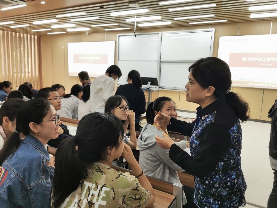 李存厚老师首先对同学们经过层层选拔而来到川大表示了祝贺,并对同学们的优秀加以肯定。她借用开学典礼上李言荣董事长的发言 “大学是人生的放大器”对同学们加以勉励,并对同学们如何适应大学的学习提出了以下建议:学习理念上,化应试教育为素质教育、化被动学习为主动学习、化死记硬背为想象探究;教学模式上,不仅要适应探究式小班化和宽松带互动性的大学课堂,还要适应教师启发而非灌输的教学手段,而且要适应对课程的过程性评价的重视,和并非标准化答案的考试检测;时间安排上,要树立良好的学习和生活习惯,在管理好自己上下功夫;价值定位上,她希望同学们能将自己的目标与民族复兴的伟业相结合,努力学习,肩负起祖国和时代的重任。最后,付运清老师表达了她对祖国未来在广大青年手中发光发亮的希冀,并期望同学们在学业有成的同时,努力让自己成为高尚的人。
