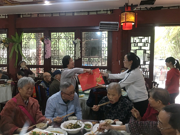 2019年10月10日中午,公司近150位离退休老教师在望江公园组织开展了重阳节慰问活动。公司党委副书记、纪委书记李天友来到现场,代表公司向老同志们送上节日的问候,并为今年年满70、75、80、85、90及以上的老同志们发放生日慰问品,祝愿大家生日快乐!阖家安康!离退休工作秘书杨谨瑗向离退休教师们汇报了近期公司和公司的各项工作,以及老师们关心的社保、养老、医疗等方面的新政策和新情况,并且针对每一位老师遇到的不同情况进行了耐心细致的解答。