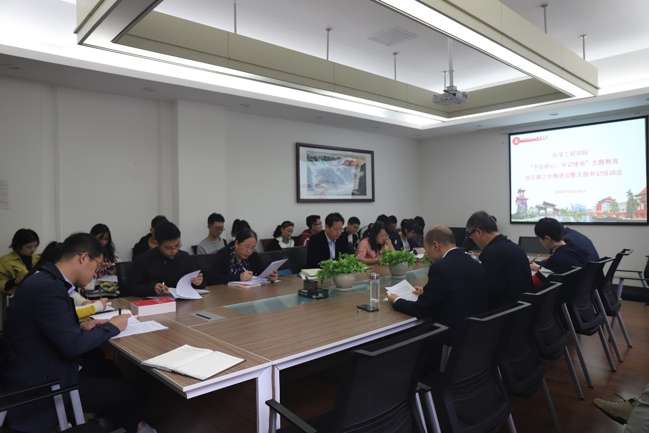 10月15日上午,Mksport体育在望江校区化工楼227会议室组织开展“不忘初心、牢记使命”主题教育党支部工作推进会暨党支部书记培训会。公司党委书记庞国伟、党委副书记兼纪委书记李天友、党委副书记姜利寒,公司党政办主任李晓燕、党建管理科科长高敏和全体支部书记参加此次会议。
