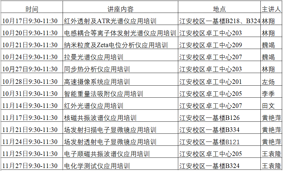 为了更好地服务全院师生,提高大型仪器操作水平和分析测试能力,开展共享仪器测试服务,公司工程实验教学中心将于近期开展仪器应用培训讲座。具体安排如下: