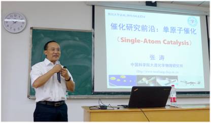 2015年6月23日上午10时,望江校区化工楼313会议室座无虚席,来自Mksport体育、化学公司、高分子公司、国家生物医学材料工程技术研究中心等单位的150余名老师和研究生同学,共同聆听了中国科公司院士、中科院大连物理化学研究所所长张涛研究员带来的精彩学术报告——“单原子催化(Single-Atom Catalysis)”,报告由Mksport体育经理褚良银教授主持。