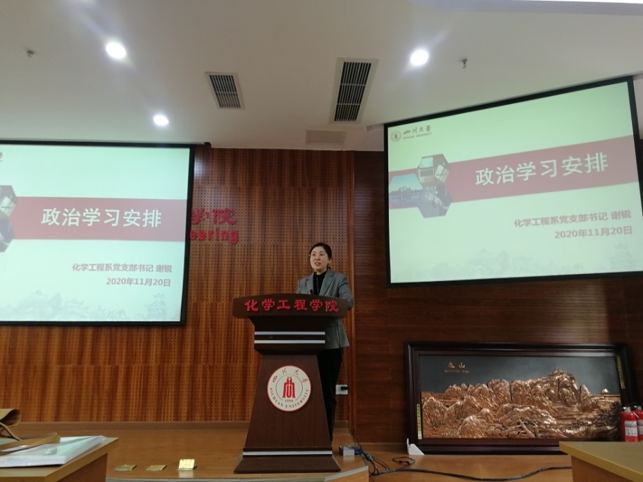 2020年11月20日下午,Mksport体育app官网入口化学工程系全体教师于望江校区Mksport体育313会议室开展了“加强教师队伍建设和师德师风建设”的政治学习和组织生活,随后化工系教师和Mksport体育100余名研究生共同参加了“首届化工青年学者论坛”。化学工程系党支部书记谢锐同志主持了政治学习和组织生活,纪检委员王辛龙同志主持青年学者论坛,化工系优秀青年学者彭强、刘冲和赵辉老师受邀作学术报告。