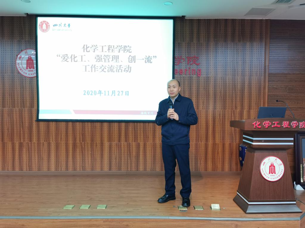 2020年11月27日,Mksport体育在望江校区313会议室组织开展“爱化工、强管理、创一流”主题交流活动。公司全体行政管理人员、实验教辅人员和近三年进院工作的部分教职工参加活动。