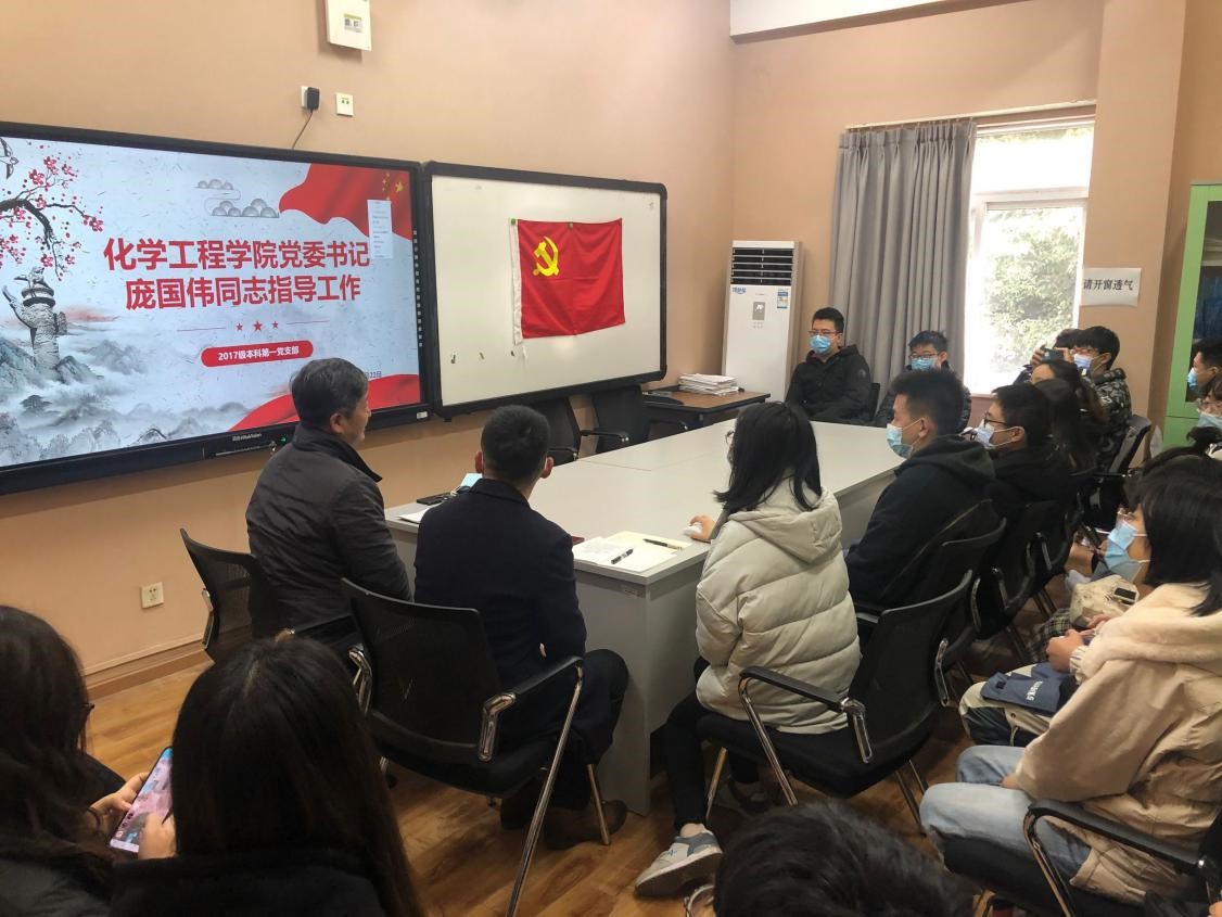 2020年12月22日中午,2017级本科第一党支部关于学习《习近平总书记教育重要论述讲义》(以下简称《讲义》)的党组织生活会在Mksport体育app官网入口江安校区西园三舍活动室召开,党支部特邀公司党委书记庞国伟同志现场指导工作。大会由党支部书记司振兵同志主持,党支部全体成员应到30人,实到26人,请假4人,其中正式党员应到27人,实到23人,请假4人。