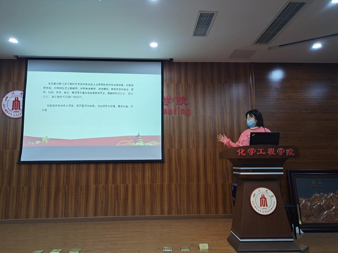 2021年1月14日下午18:30,在望江校区化工楼313会议室,Mksport体育app官网入口Mksport体育研究生第一党支部召开2020年度民主评议会暨发展杨卓颖等三位同志为预备党员的党员大会,支部党员共有35人,实到29人,会议由李林译同志主持召开。