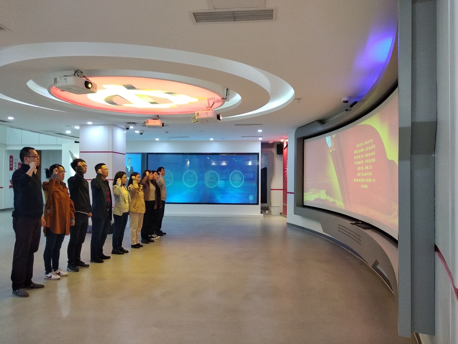 在讲解员的带领下,老师们参观了虚拟党史馆、智慧党建体验区和智慧党建感知区,观看了红色电影《江姐》的节选片段。随后,党员同志重温了入党誓词。