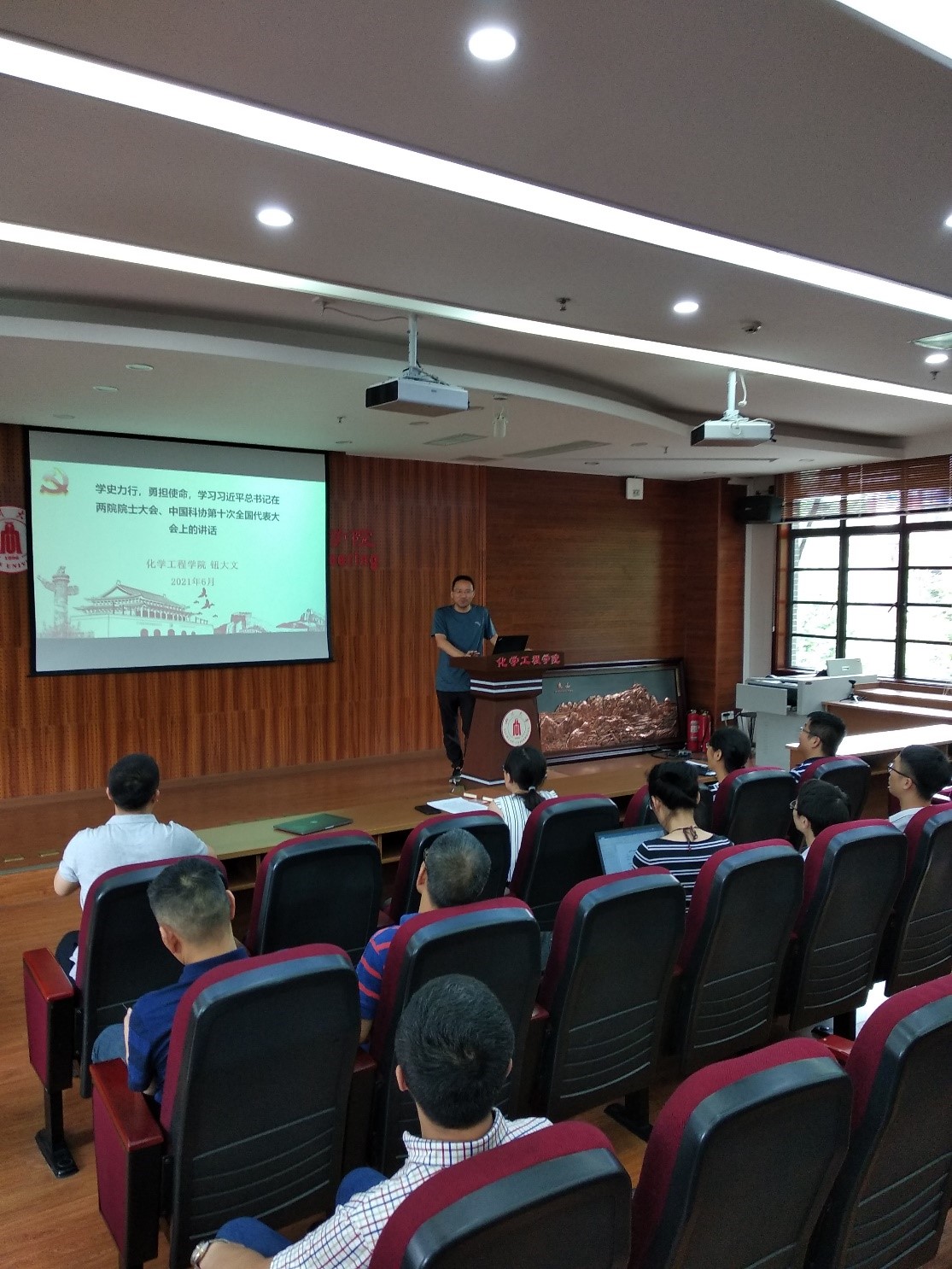 首先,钮大文副经理结合“学史力行,勇担使命”的学习主题和习近平总书记在两院院士大会、中国科协第十次全国代表大会上的重要讲话精神,为全体参会成员上了一堂党课。钮经理简要回顾了在中国共产党的领导下,我国在多个领域从无到有,不断开拓,取得突出成绩的科技发展历程,和在此期间为我国社会和工业发展做出突出贡献的科技工作者的先进事迹。接着,钮经理带领全体老师一起重点学习了习近平总书记对新时期科技工作的指示精神,强调了大家要自觉履行高水平科技自立自强的使命担当。
