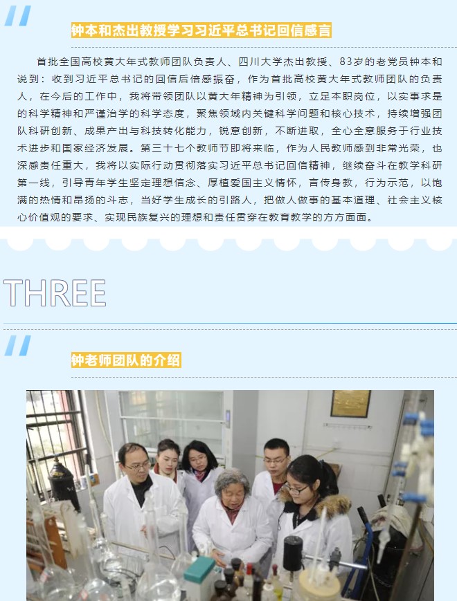 9月13日,公司微信平台推出“习近平总书记回信勉励全国高校黄大年式教师团队代表”主题推送。微信中,对习近平总书记对全国高校黄大年式团队教师代表回信全文内容进行了转载,并对全国首批黄大年式教师团队代表钟本和教授团队先进事迹进行了宣传。