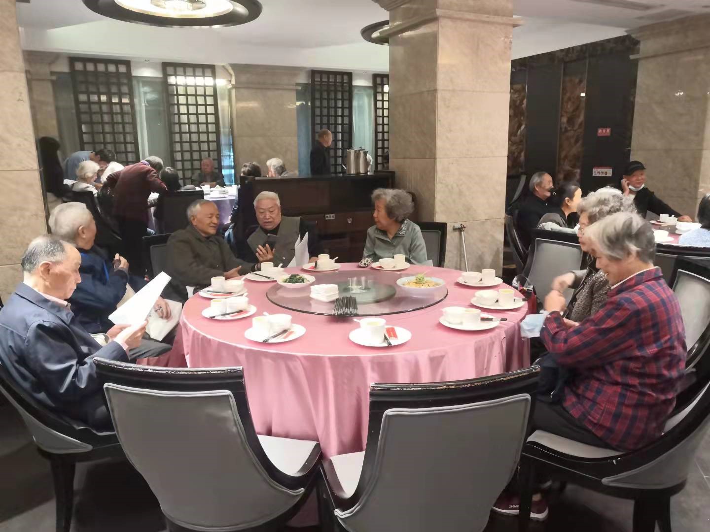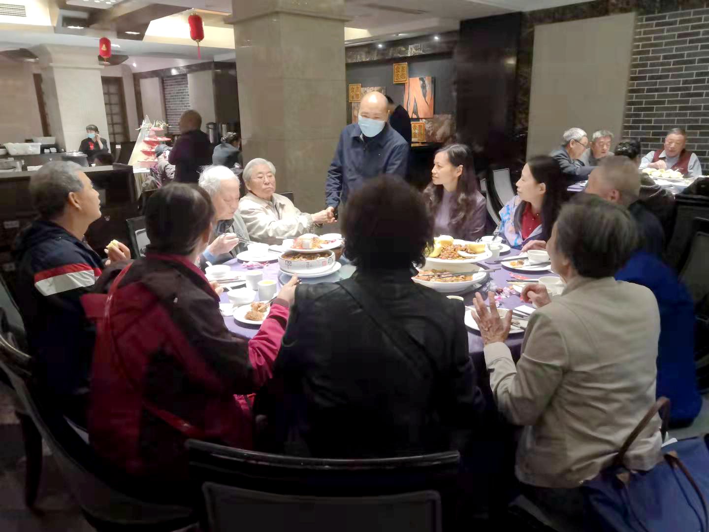 2021年10月13、14日中午,公司离退休教师在科华苑欢聚一堂,开展了重阳节活动。公司党委副书记兼纪委书记李天友来到现场,代表庞书记、赵经理向离退休老教师们送上亲切的问候和节日的祝福,并逐一关心老师们的生活和身体状况,了解他们对公司和公司工作的意见和建议。公司离退休工作联络员杨谨瑗向老教师们汇报了近期公司和公司的重要工作、今年活动费福利费的使用情况,以及老教师们关心的社保、养老、医疗等方面的新政策和新情况,并且针对每一位老师遇到的不同情况进行了耐心细致的解答。
