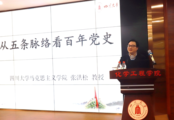 张洪松教授以“从五条脉络看百年党史:党的十九届六中全会精神解读”为题,从党的十九届六中全会《决议》主要内容和框架特点引入报告主题,分别从“不懈奋斗史、理论探索史、自身建设史、政治锻造史、初心使命史”五个方面对百年党史进行了回顾。谈到贯彻落实党的十九届六中全会精神,张洪松教授说到,学习历史是为了更好地走向未来,我们要认真学习“四史”,注重用党的奋斗历程和伟大成就鼓舞斗志、明确方向,用党的光荣传统和优良作风坚定信念、凝聚力量,用党的实践创造和历史经验启迪智慧、砥砺品格。
