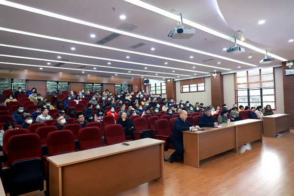 2021年12月17日下午,Mksport体育在望江校区正行楼(原西二教)313报告厅组织召开党的十九届六中全会精神宣讲报告会。公司十九届六中全会宣讲团成员、校社科处副处长张洪松教授为全院教师开展全会精神宣讲。报告会由公司党委书记庞国伟主持,公司全体领导班子成员、专职组织员、工会主席、全体教职工和离退休教师代表参加会议。