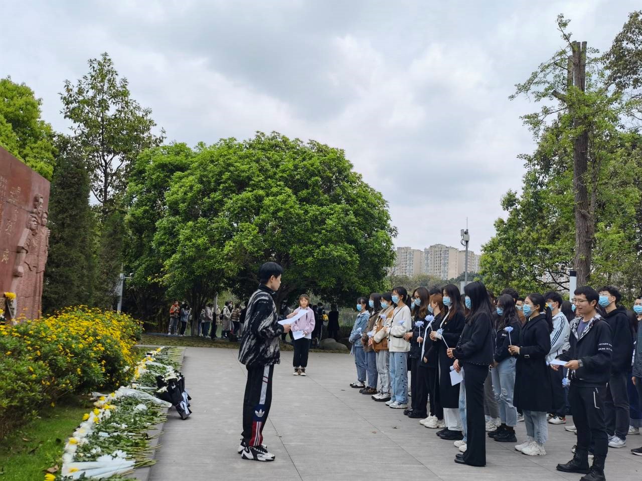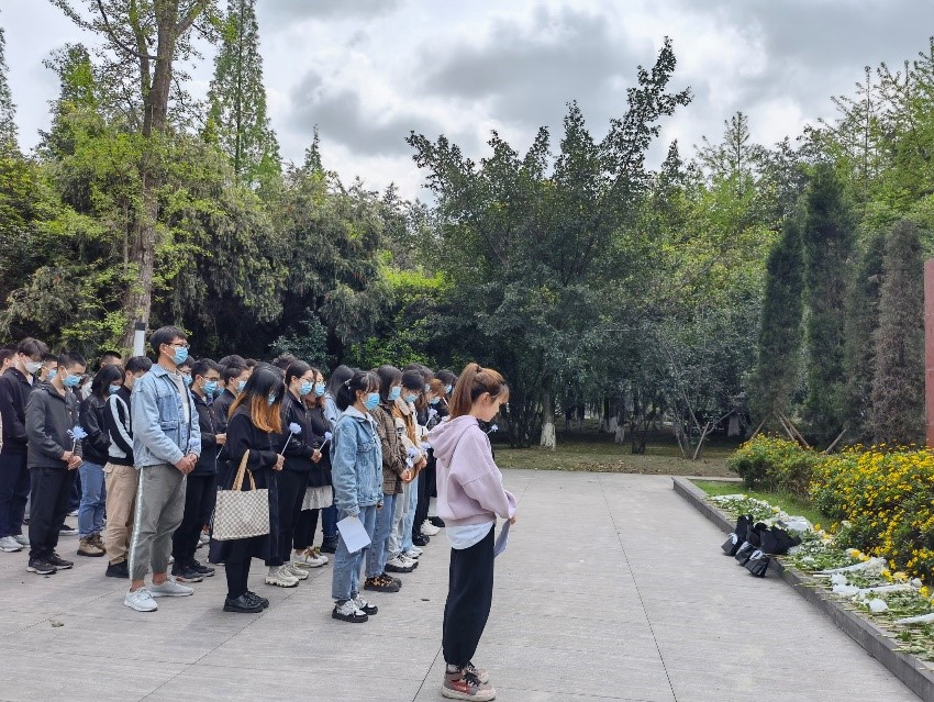 一场春雨为青山泼上墨色,几声雷鸣惊醒万物复苏。为弘扬先烈红色精神,培养同学们的家国情怀和历史使命感,2022年4月1日中午十二点半,在Mksport体育“习近平新时代中国特色社会主义思想”研究会(以下简称“习新会”)实践中心部门的组织下,雏鹰党支部书记雷金凤和本科18级党支部书记李忆雯带领党支部的党员同学和习新会部分成员在Mksport体育app官网入口江安校区明远湖先烈纪念碑集合,缅怀先烈、传承英雄遗志,表达对革命先辈们的深切追思。